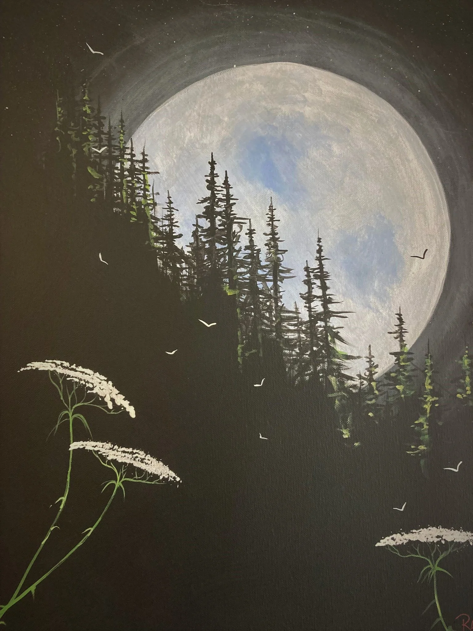 Participants will be led by the instructor to paint the depicted night scene on a 16" x 20" stretched canvas. Ernie Ross will teach a variety of techniques to complete the painting that can then also be applied to future painting projects. This class is designed for beginner's, but all skill levels are welcome.
